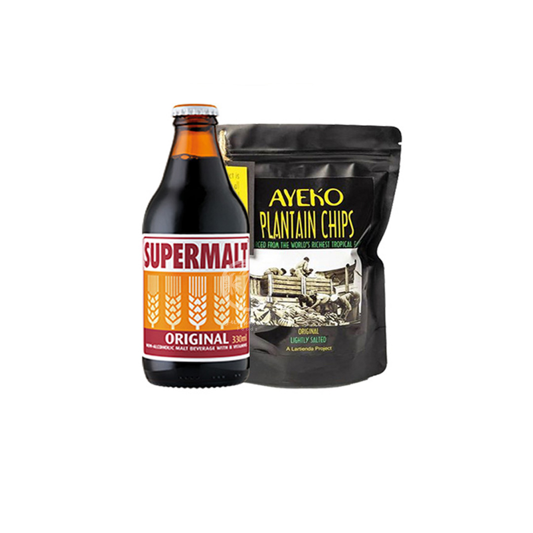 Supermalt: Water, Barley Malt (10.1% of the total Liquid), Barley, Sugar, Colour (E150c), Carbon Dioxide, Liquorice, Vitamins (Niacin (B3), Thiamin (B1), Pantothenic Acid (B5), Riboflavin (B2), Vitamin B6).